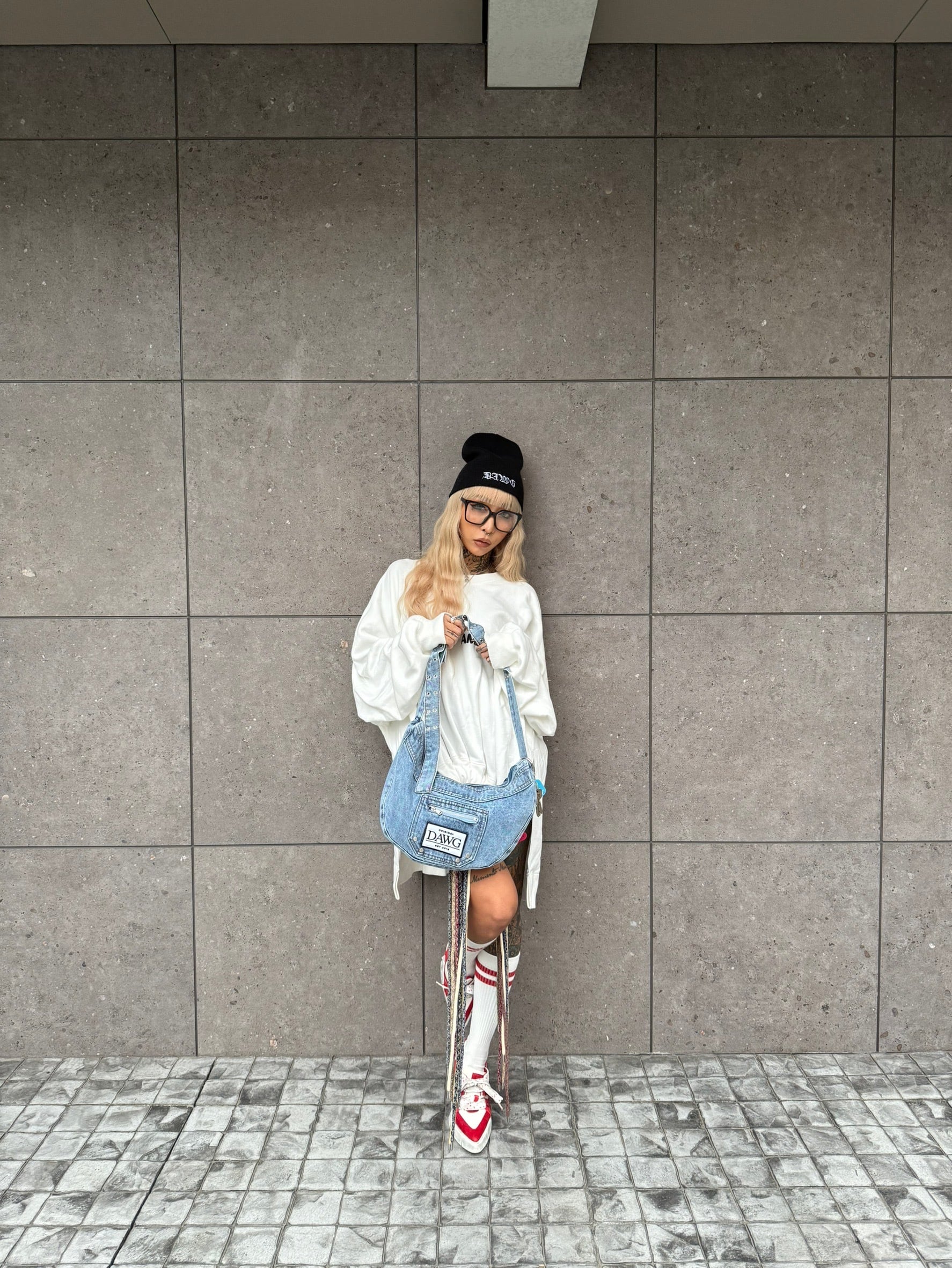 やわらかいデニム素材で、カジュアルながらも存在感のある仕上がり。